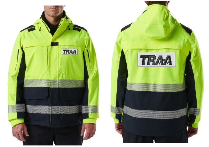 511O-48379-DN 5.11 Responder Parka 2.0, Lime/Dark Navy with TRAA Emblems