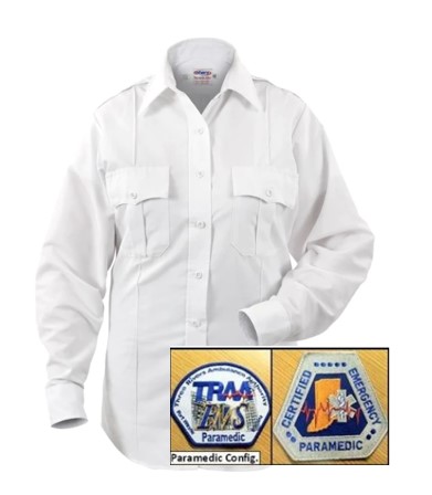 EB-P801LC-WH Women’s Long Sleeve Paragon Plus Shirt, White, with Paramedic Emblems